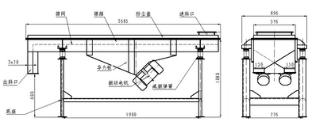 4、橡膠彈簧支承篩框,隔振吸聲,噪音低,設(shè)備動(dòng)負(fù)荷小,不需混凝土基礎(chǔ)。